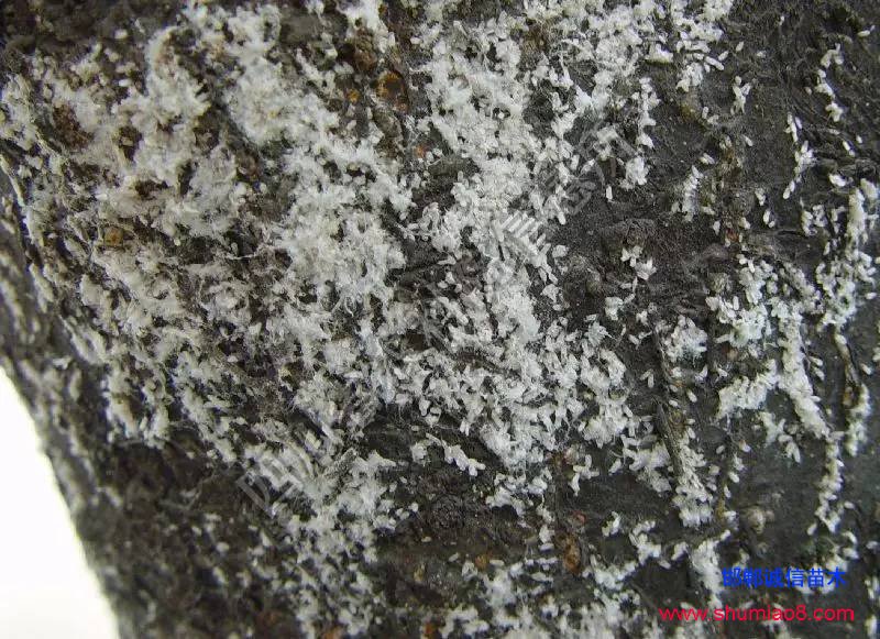 危害癥狀 以桃樹上發(fā)生最重,李樹、核桃、櫻桃等也有不同程度發(fā)生。若蟲和成蟲聚集在枝干上,刺吸主干、嫩枝、葉片的汁液,以2~3年生枝條受害最重。